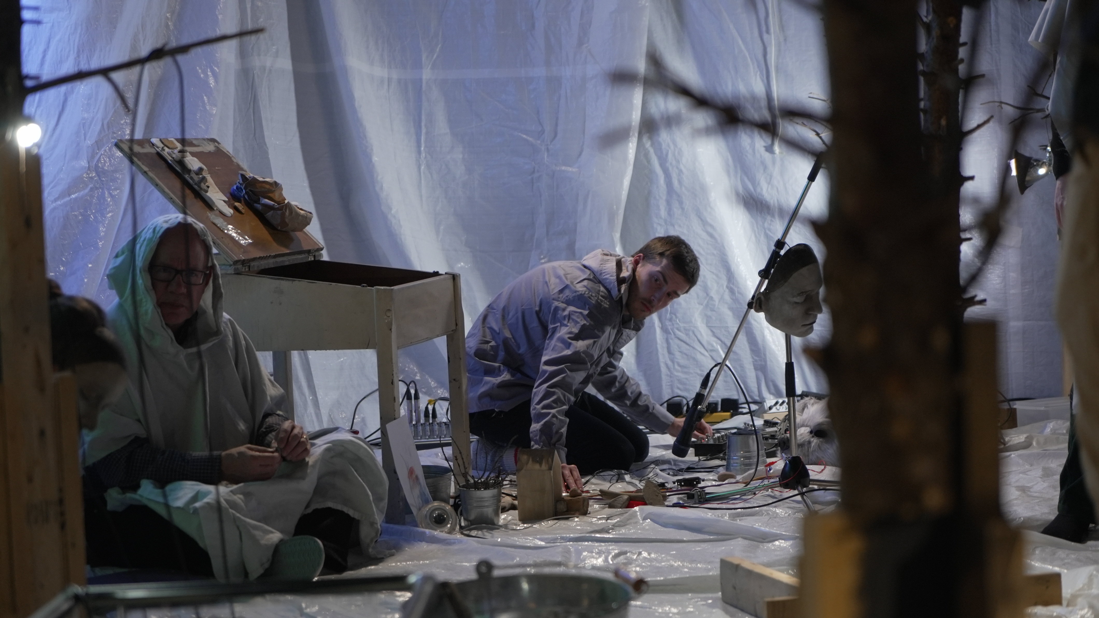 La patience des choses est une recherche visuelle immersive, ni vraiment théâtrale, ni résolument performative, qui explore l’objet et la matière dans des systèmes qui les rendent « marionnettiques » par les relations qu’ils créent entre les éléments. C’est une aventure indéterminée, imprécise, qui laisse place à l’inattendu, à l’accident, mais aussi, ou ainsi, à la magie poétique. C’est un projet qui demande une posture d’écoute des matières et de ce qui se présente, où artistes et public sont invités à faire du sens, chacun·e en y mettant ses yeux, ses pensées ou peut-être même ses mains et son corps entier.