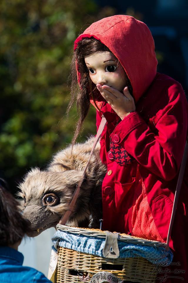 Once upon a time, on your path, there was a big girl named Big Red Hoody. As she walks her wolf through towns and forests, she encounters all kinds of strangers. If you’re not afraid of the wolf, grab a cake, move in closer to get a good look and discover who the peckish grandmother is.